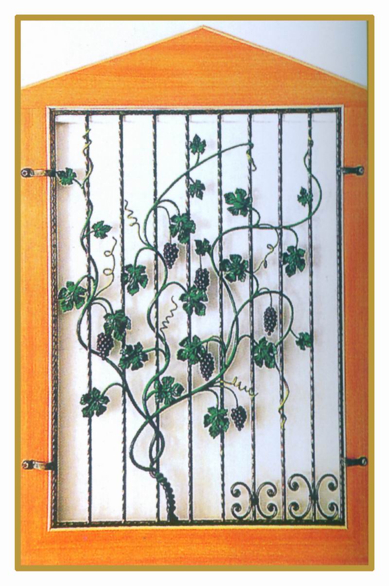 這款TYC-016型號窗是無錫鐵藝護欄廠為別墅、私宅設計的。窗子的四周采取了簡單的邊框,重點凸顯里面的內容。里的桿子采用螺旋的立體線條,就像生活中的葡萄架。中間則表會了一副栩栩如生的葡萄。深紫色的葡萄串,綠色的葡萄葉,及黑褐色的葡萄桿。刻畫的十分逼真。此畫將大自然中的景色融入到了窗中,做到了窗中有畫,畫中是窗的別致構想。