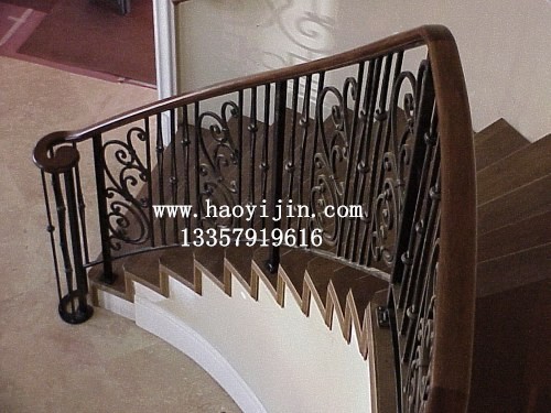 這款TYFS-003型號扶手是無錫鐵藝護欄廠為中高檔別墅、私宅設計的。此款扶手主要以豎條造型為主,在豎條上夾雜著圓球,此外每五根豎條之間都會插入浪花亦或是抽象的龍造型。扶桿采用了仿木色,使得鐵藝扶手接近于木藝扶手,在裝飾較中國風的家里,搭配這種扶手是上上之選。