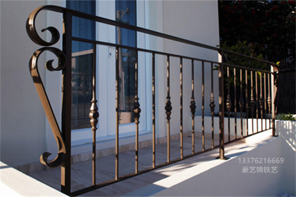 這款護(hù)欄的設(shè)計簡潔而優(yōu)雅,主要由垂直的欄桿和頂部的裝飾性卷曲花紋組成。欄桿的顏色為深棕色,給人一種沉穩(wěn)和古典的感覺。其精美且實用的鐵藝欄桿,適合用于戶外陽臺或露臺的防護(hù)。