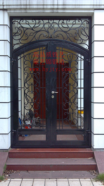 該款編號為TY-JHM13的鐵藝門是無錫鐵藝護欄廠為別墅庭院設計的一款高檔豪華的鐵藝門。該款鐵藝門材料搭配美觀合理,選材穩(wěn)定,容易鍍鋅。由常年從事鐵藝制造工作的專業(yè)技師經(jīng)手工鍛打、加熱、彎曲造型、拋光、節(jié)點特殊處理、硝基油漆等工藝制造而成。該鐵藝門美觀大方而又不失厚重感,門體上面的兩個圓及其內部和上部裝飾物提升了大門的整體效果。其花葉和裝飾物配件都經(jīng)過精挑細選、稱得上是獨出心裁,安裝合理。可作為別墅庭院大門的首選。