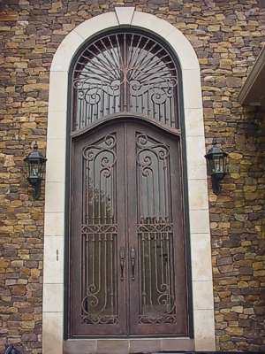 該款編號為TYM-022型號的鐵藝門為無錫鐵藝護欄廠為別墅庭院專門設計的具有仿古氣息的鐵藝進口門。玻璃、鐵的結合體。玻璃透光性好,鐵藝的彎花線條優美、流暢。門頂較高,氣場強大。鐵材材質優質、穩定,嚴格遵循國標,加工過程采用純手工鍛打,成品經過熱鍍鋅處理,戶外暴曬20年不生銹、不脫漆。該款鐵藝門設計精美、高貴典雅,是一款較適合高端豪華別墅的鐵藝進戶門。